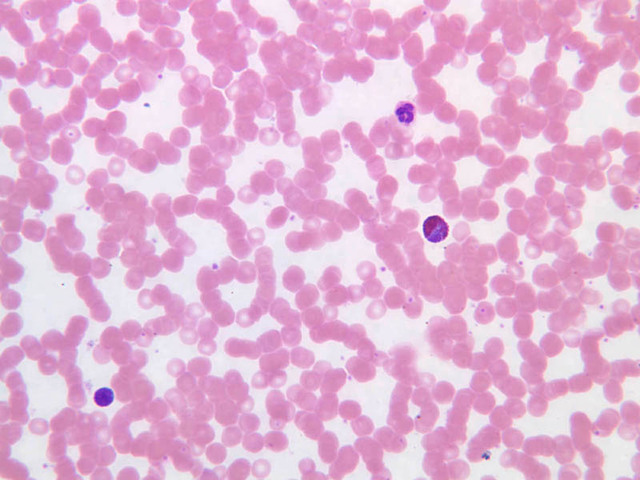 like poker chips called rouleaux. This is common in blood diseases where there are too