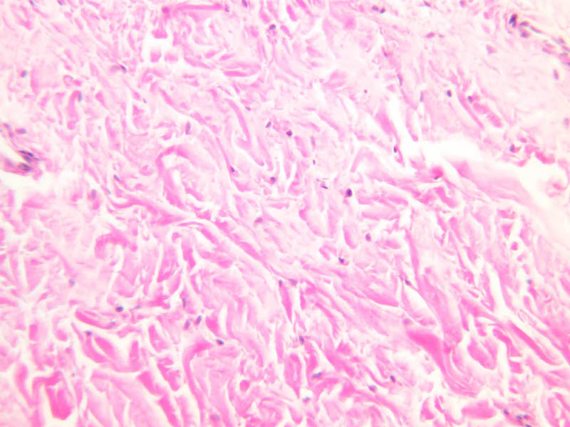 5 Collagen (none) H&E, PTAH a93b irregular ct breast 40x labeled.jpgA93, Mammary, 40x; a6 collagen costal cartilage 40x labeled.jpgA6, Costal Cartilage, 40x; a58b collagen fibers reticular dermis 2x labeled.jpgA58, Skin, 2.5x; a19c fibroblast tendon 40x labeled.jpgA19, Myotendinous Junction, 40x