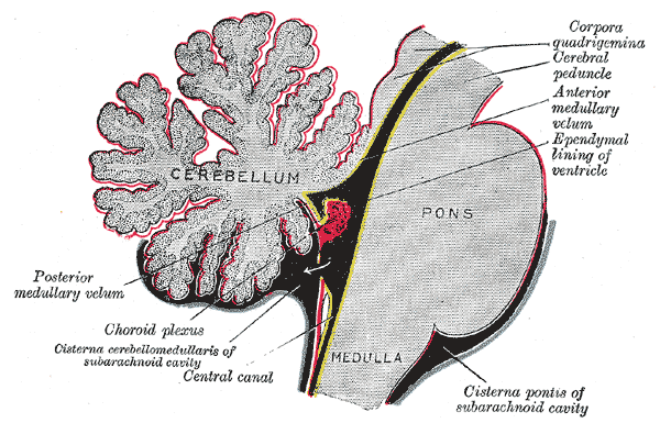 cerebellum. The choroid plexus is a tangled mass of blood vessels and modified