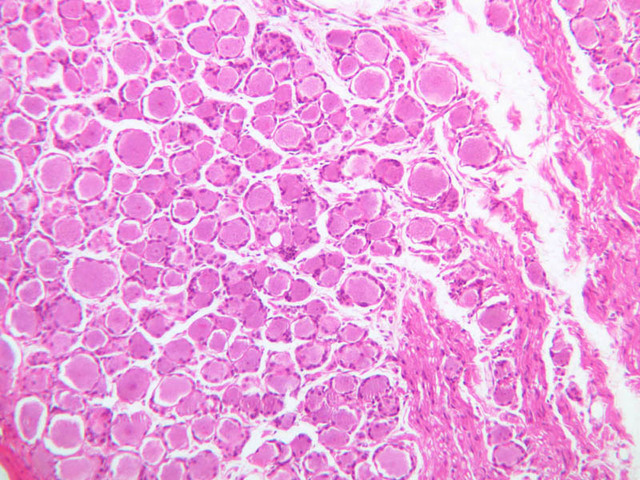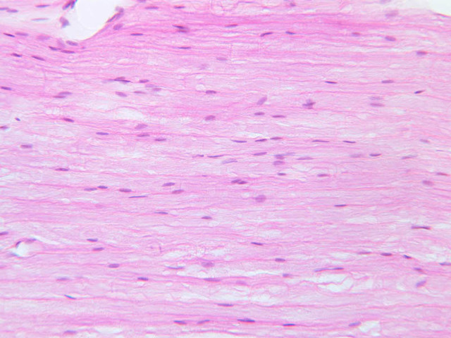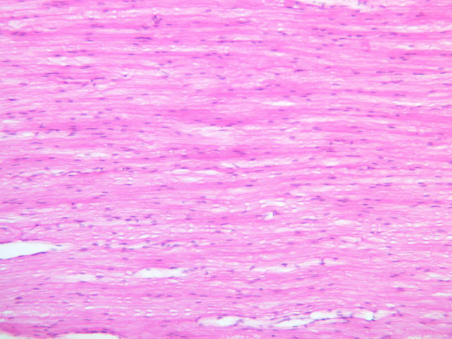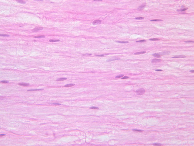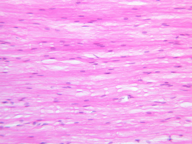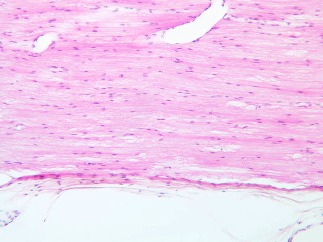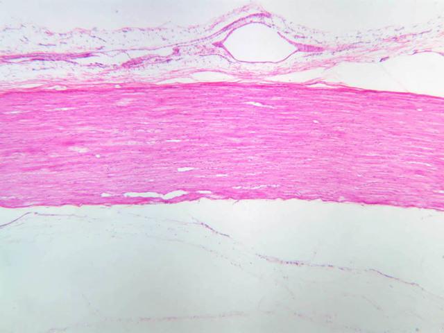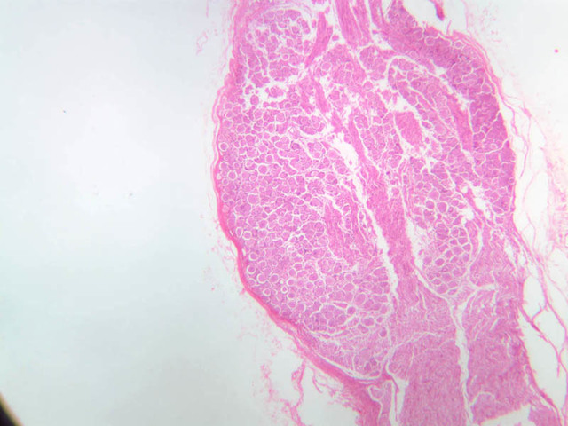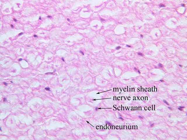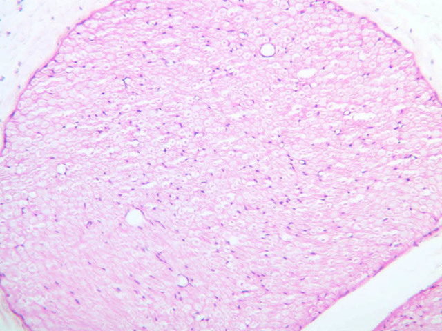 40x]) of a peripheral nerve stained with H & E. First examine the nerve cut in cross