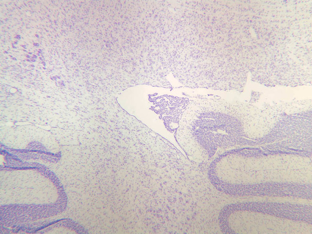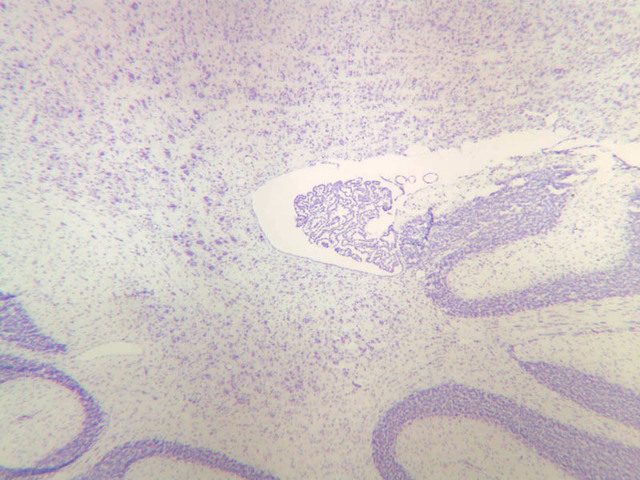 40x]), a coiled structure located in the fourth ventricle, which is at the base of the