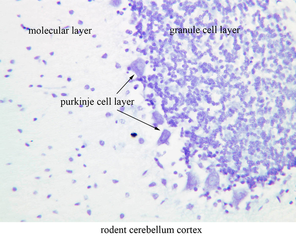 is a preparation from rodent cerebellum. Identify the three layers of the cerebellar cortex,