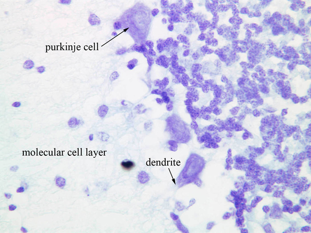 and in particular seek out the Purkinje cells. Find examples of the large dendrites that