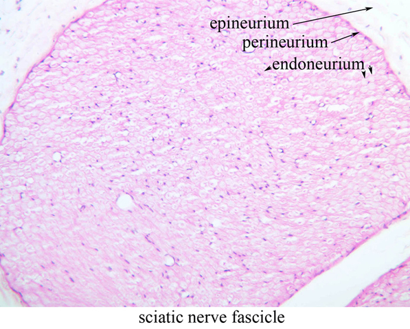 nerve and the fascicles of axons within the nerve. These fascicles are bound together by a