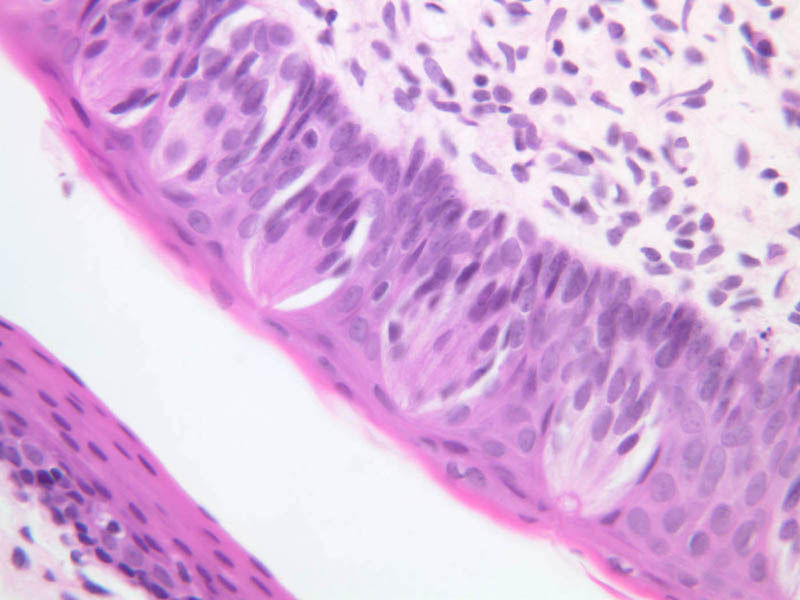 40x]). Note that the epithelium on the lingual surface (A-67 [