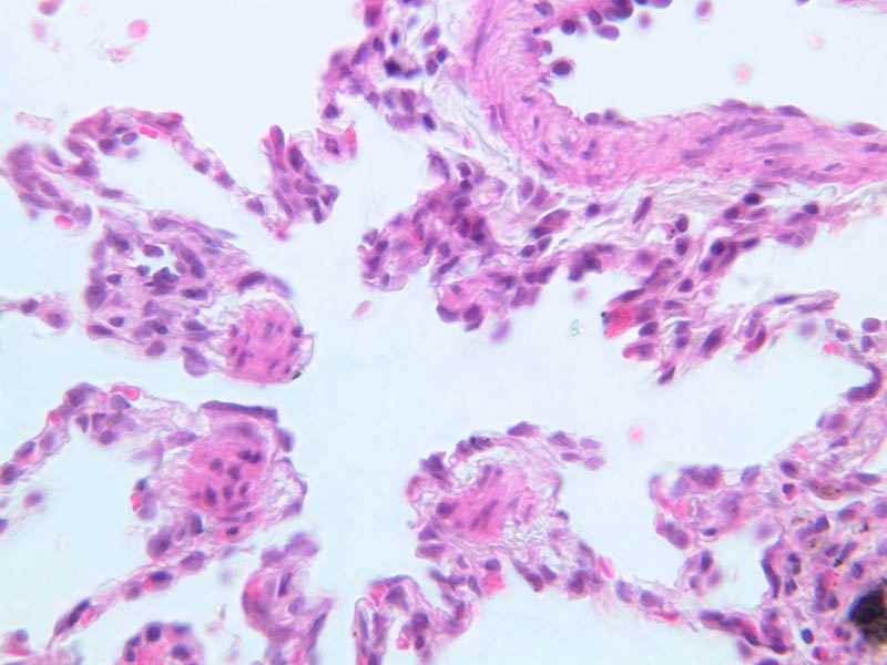 15 Knobs of Smooth Muscle (none) H&E a74 alveoli 20x labeled.jpgA74, Lung, 20x