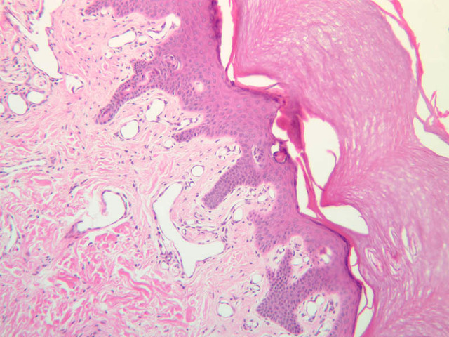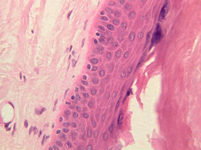 26 Keratinized Scales (none) H&E a50i spinosum 20x labeled.jpgA50, Fingertip, 20x