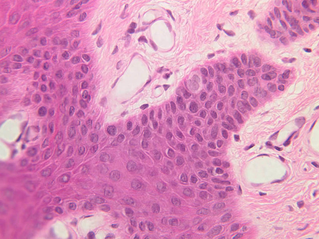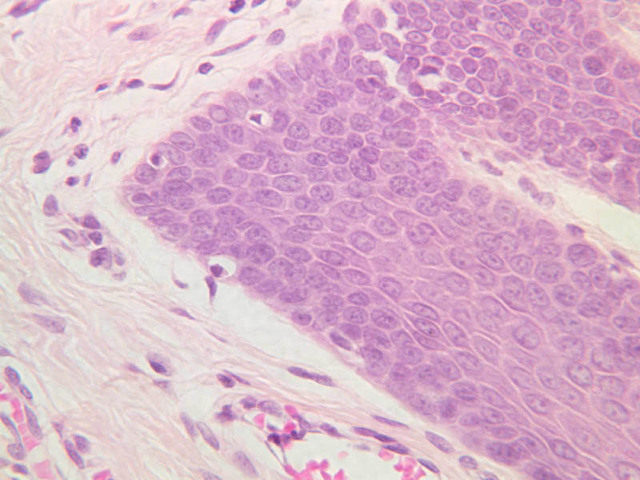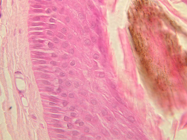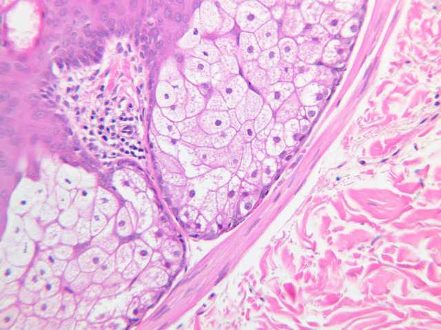 16 Basal Cells BC H&E a50 thick skin 40x labeled.jpgA50, Fingertip, 40x