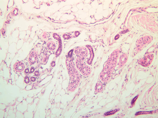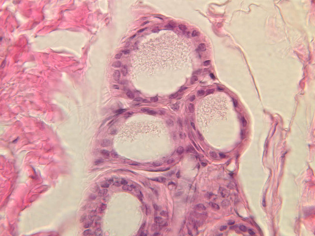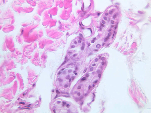 33 Capillary C H&E a48b gland abdominal skin 40x labeled.jpgA48, Abdominal Skin, 40x