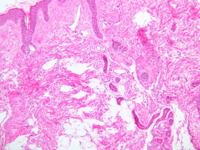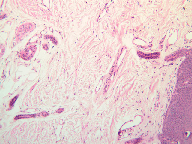 1 Papillary Dermis (none) H&E a48 dermis 10x labeled.jpgA48, Abdominal Skin, 10x