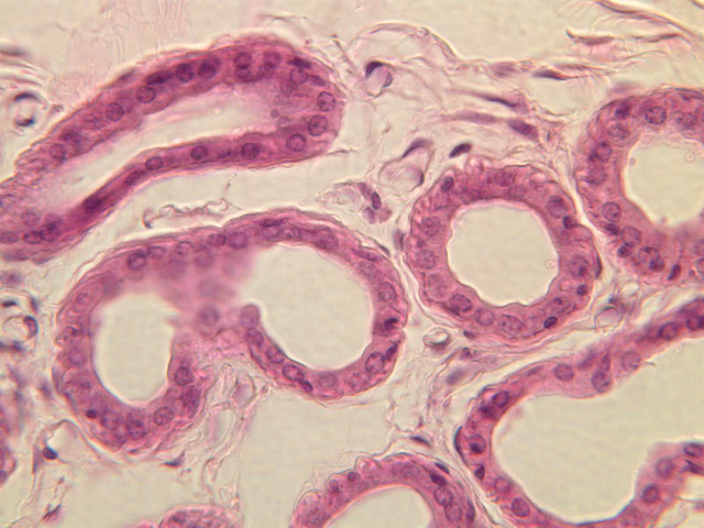 34 Coiled Duct CD H&E a58 eccrine gland 20x labeled.jpgA58, Axilla, 40x