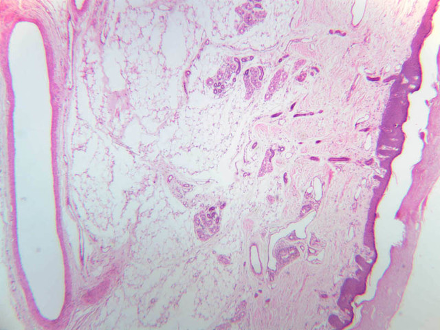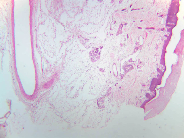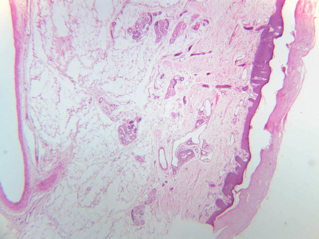 3 Adipose Tissue AT H&E a48 abdominal skin 10x labeled.jpgA48, Abdominal Skin, 10x