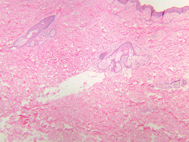 2 Reticular Dermis (none) H&E a48 dermis 10x labeled.jpgA48, Abdominal Skin, 10x