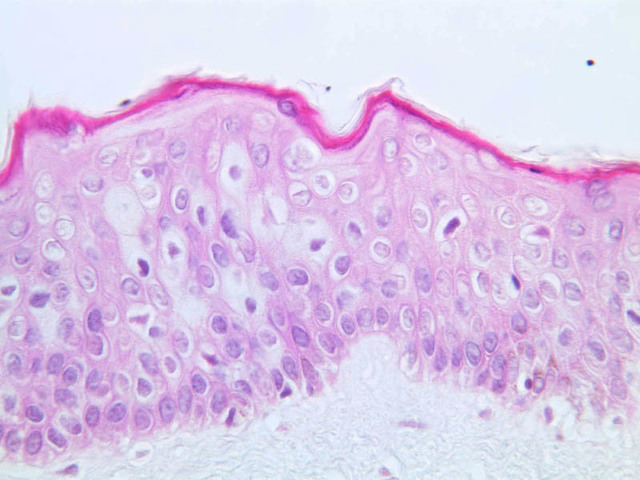 17 Keratinocyte K H&E a50 thick skin 40x labeled.jpgA50, Fingertip, 40x