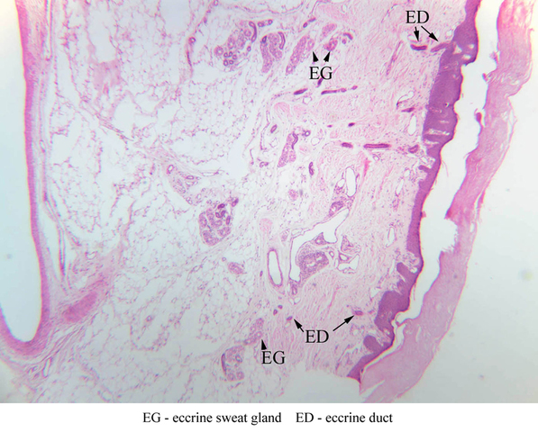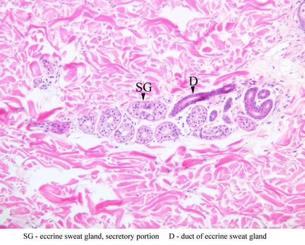 3 Eccrine Sweat Gland SG H&E a58 sweat glands 2x labeled.jpgA58, Axilla, 2.5x