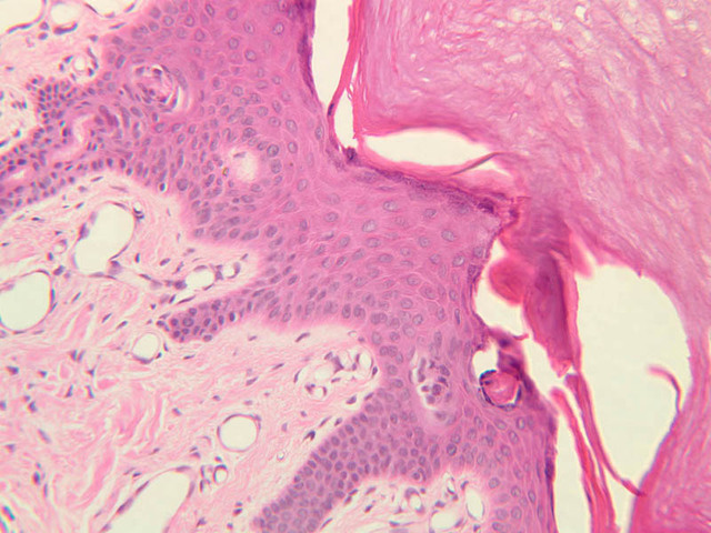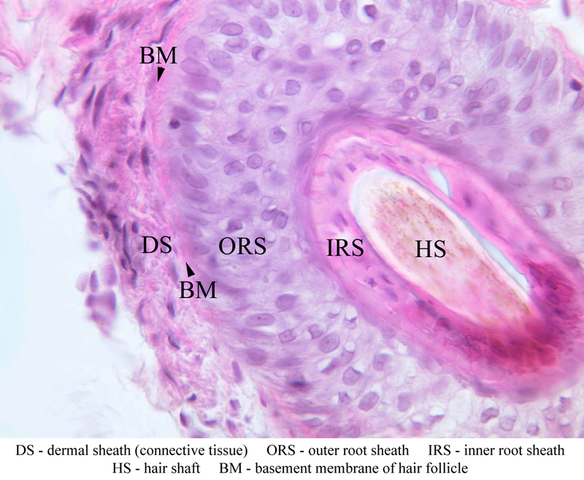 3 External Root Sheath ERS H&E a49b hair scalp 20x labeled.jpgA49, Scalp, 20x