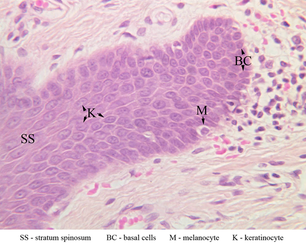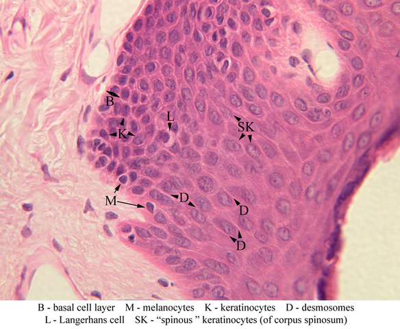 25 Epidermis (none) H&E a50i spinosum 20x labeled.jpgA50, Fingertip, 20x