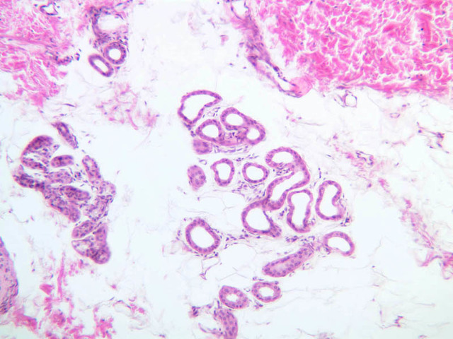 6 Myoepithelial Cells MC H&E a58 sweat glands 40x labeled.jpgA58, Axilla, 40x
