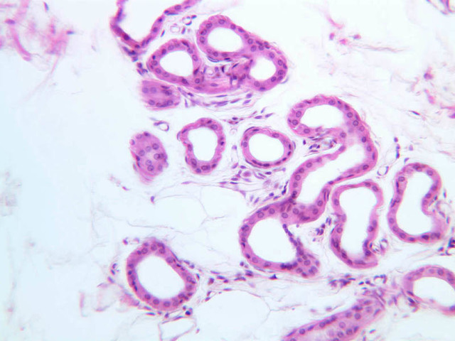 6 Straight Duct SD H&E a58 eccrine gland 20x labeled.jpgA58, Axilla, 40x